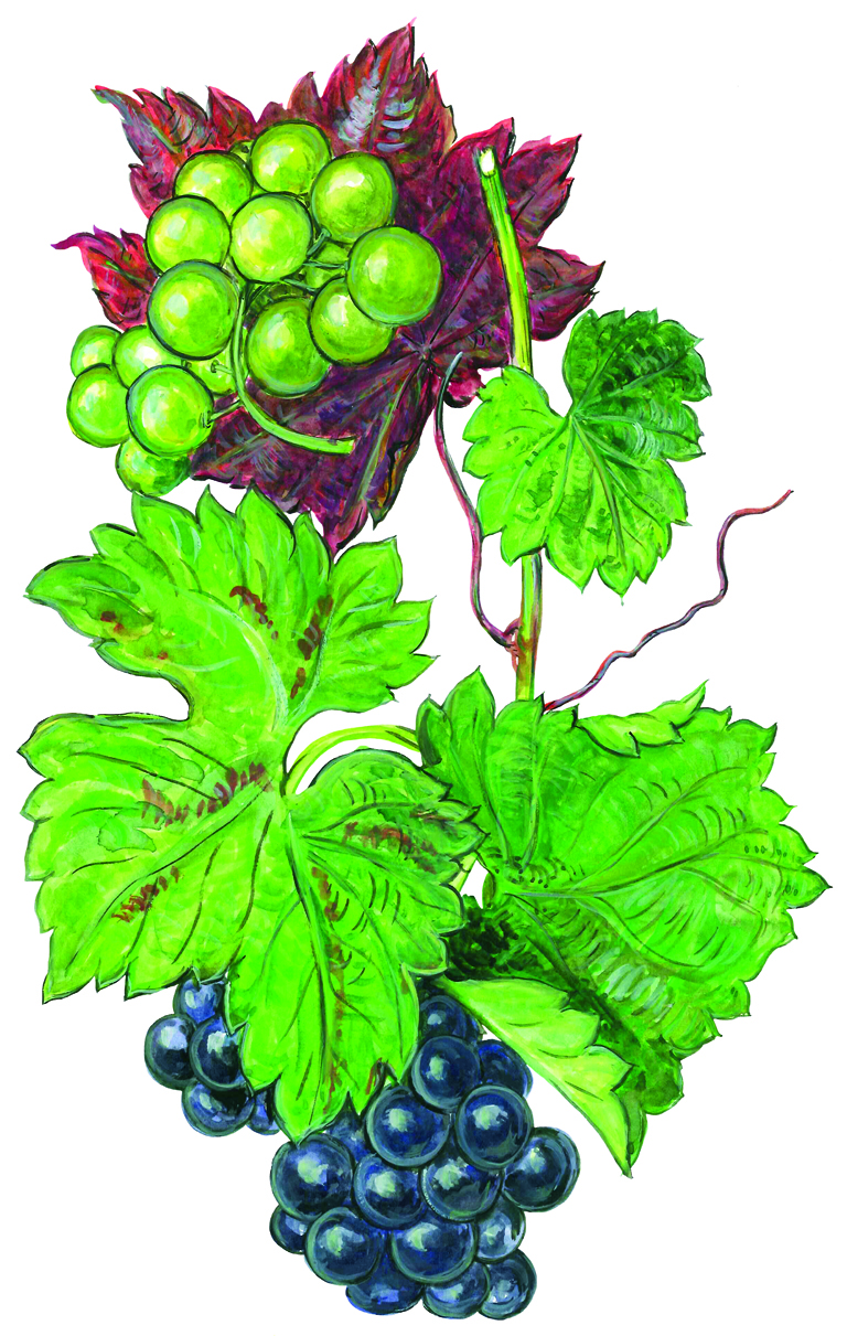 Weintrauben ⓒ Aquarell von Adolf Blaim, Kräuterpfarrer-Zentrum Karlstein/Thaya